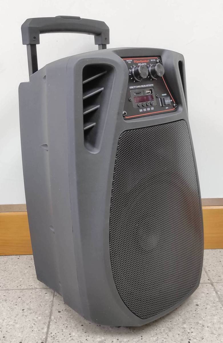 內置充電鋰電池,乾濕電兩用,帶3.5輸入、一個USB插位及一個咪輸入,6.5吋低音喇叭,約80w輸出,重約 3.2kg。內置一無線手持咪及咪優先功能,最佳用作流動後置擴音喇叭。 |